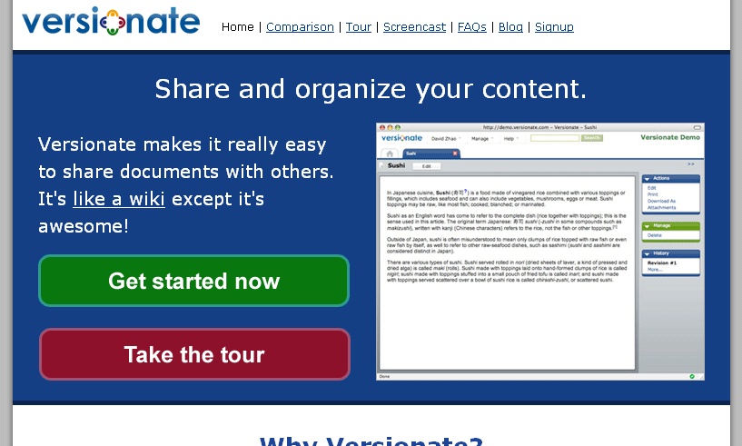- Accessibility, Redundancy, and Interoperability are critical in the wiki world. Along all these lines, Versionate will have to take large strides; from the allowing of a site backup (that can actually occur in less than 2 weeks time!) to allowing for 3rd-party interaction with its components.