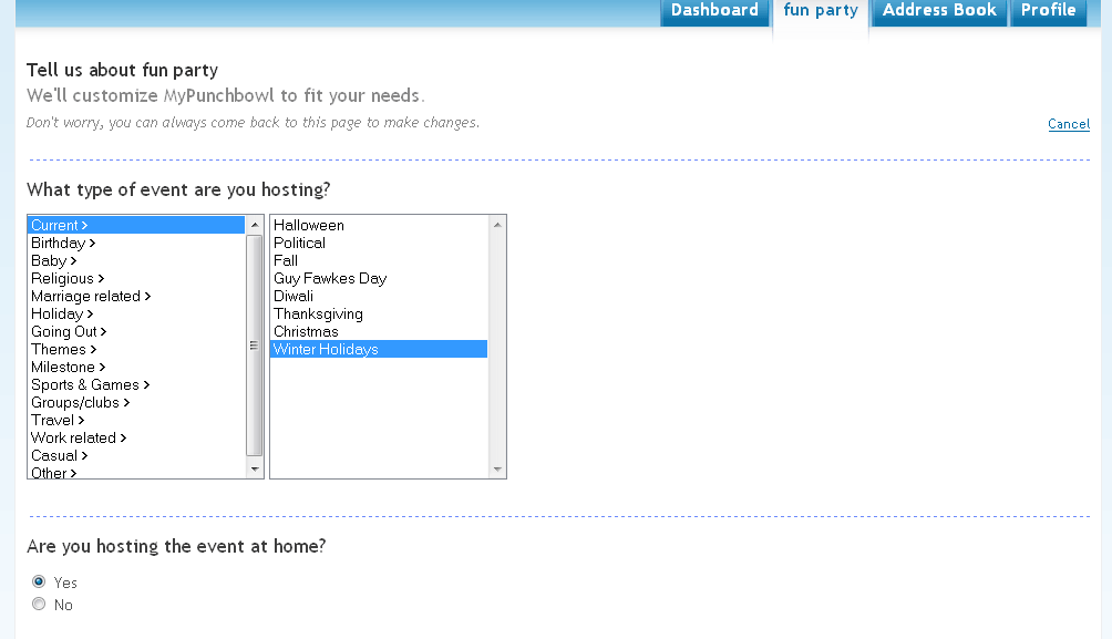 Altogether, it will not take the typical myPunchbowl user, or for that matter, an online event planner user, too long to orient themselves (through some poking, clicking, interacting), adapt and learn how to use the fairly Recognizable myPunchbowl event creation process.