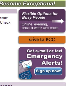Perhaps the element on this page that initially indicates a high degree of importance is the ‘Give to BCC’ button. The brightness of ‘Give to BCC’ with the heavy weighting given to its neighbors, marketing text ("flexible options for busy people", "emergency alerts") presents an initial, yet artificial, sense of greatest importance relative to the entire webpage and website.