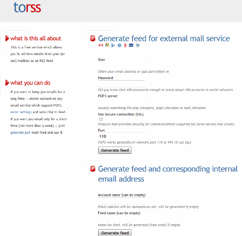 ToRSS is a product that enables users to receive their email via RSS.