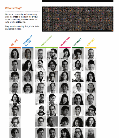 Etsy is unique in their approach to providing information about the real team members. They are unique in both the …
