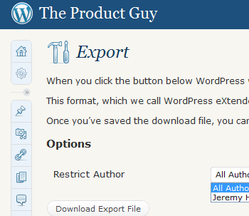WordPress proves a good source for demonstrating the variable value for the Customizability of the Quick-MI category of Portability’s variable User Generated Content Exportability, with this product allowing for some customization of the exported content, by way of controlling which authors are included within the resultant output.