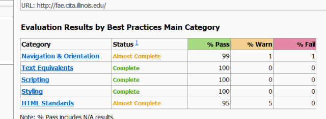 I use a robust (and free) proxy for quickly assessing a product’s Accessibility through the use of the Functional Accessibility Evaluator (FAE) link. The FAE’s resultant scores are averages which, in turn, are normalized to a range from zero to one to represent the value for Quick-UX‘s Accessibility variable.