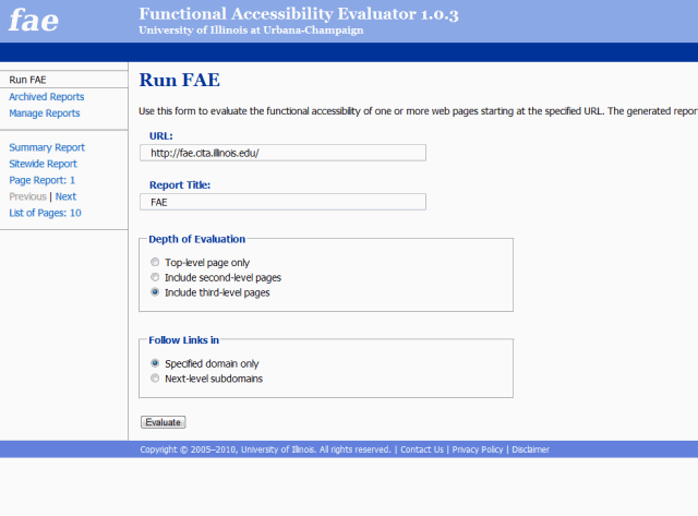 Example: Functional Accessibility Evaluator (FAE)