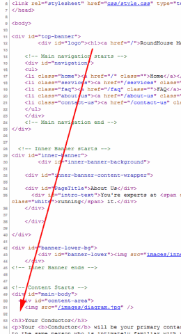 - When using <H#> tags on a page, they should go in-order, and not skip heading delineations for visually stylistic convenience.